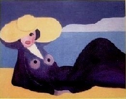 "La sognatrice sulla spiaggia" tecnica: olio su tela - cm.80x120