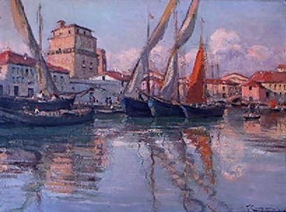 Pittore: Tullio Campriani "Darsena di Viareggio" tecnica: olio su tavola- cm.40x60 - anno 1926 (collezione privata)