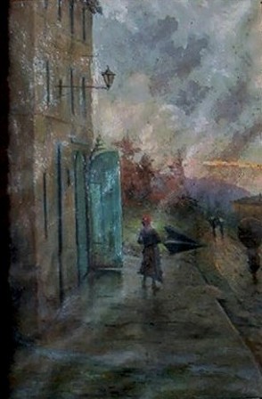 Pittore: Nino Carrara "Donna con l'ombrello" tecnica: olio su tela - cm.35x50 - anno 1927 (collezione privata)