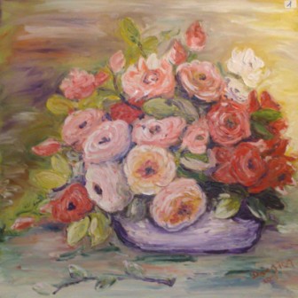 Pittrice: Dragica Stevanovic "Fiori" tecnica: olio su tela - cm.80x80
