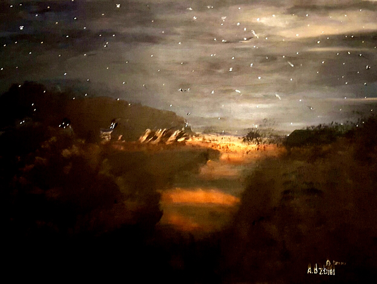 "Cielo stellato" tecnica mista dipinto ad olio e cristalli- cm. 60X80 - anno 2014